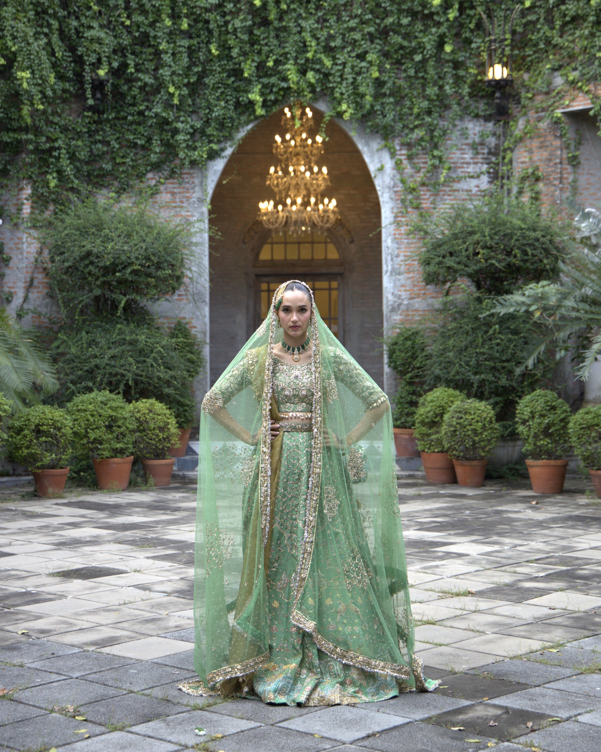 Paired with a soft net dupatta, it whispers elegance and heritage, crafted for the bride who embodies poise ano timeless charm.